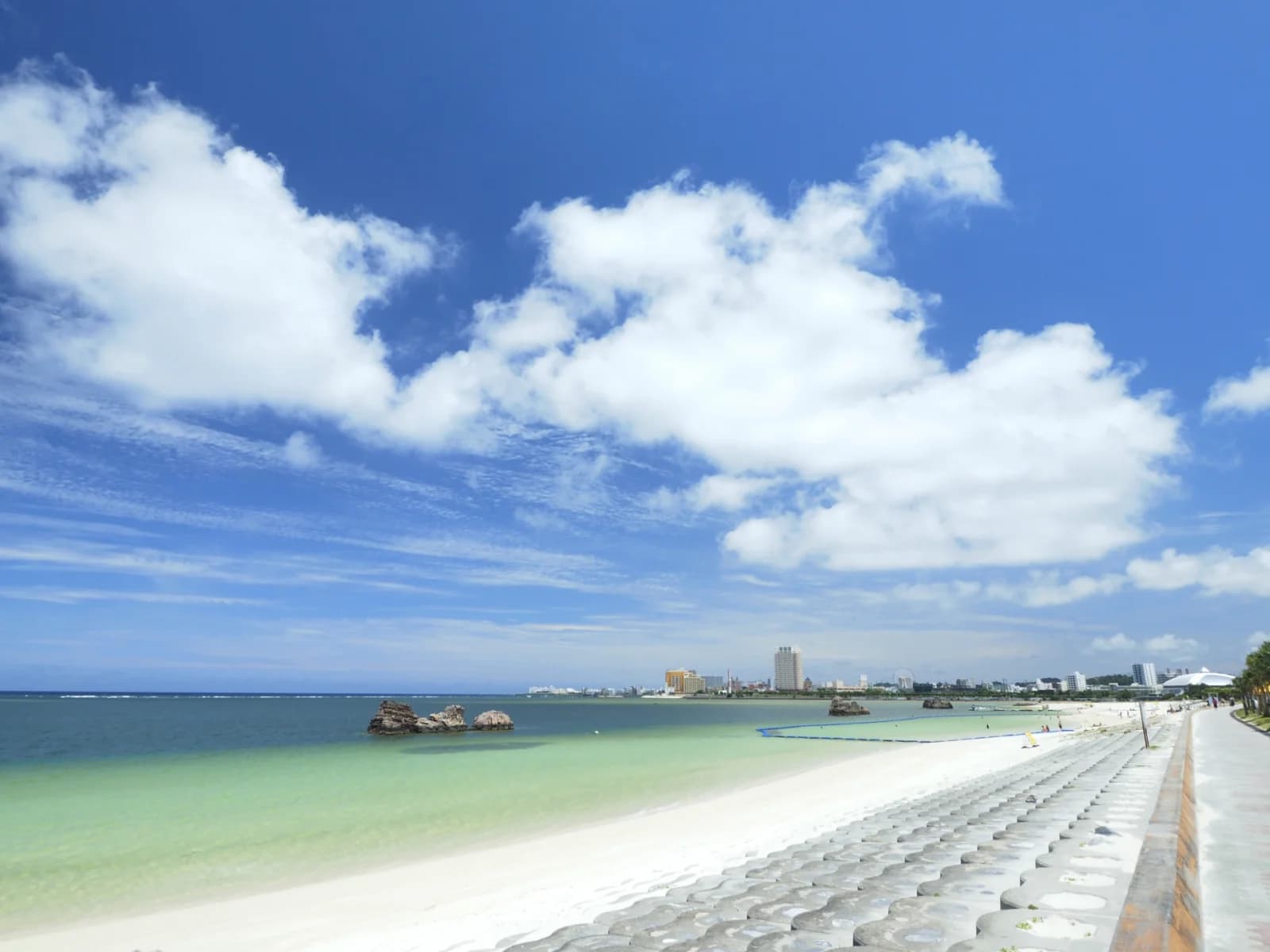 北谷の海沿いに広がる開放的なビーチで、散歩やサンセット鑑賞にもおすすめです。遊泳禁止エリアもあるため、案内表示を確認して楽しみましょう。