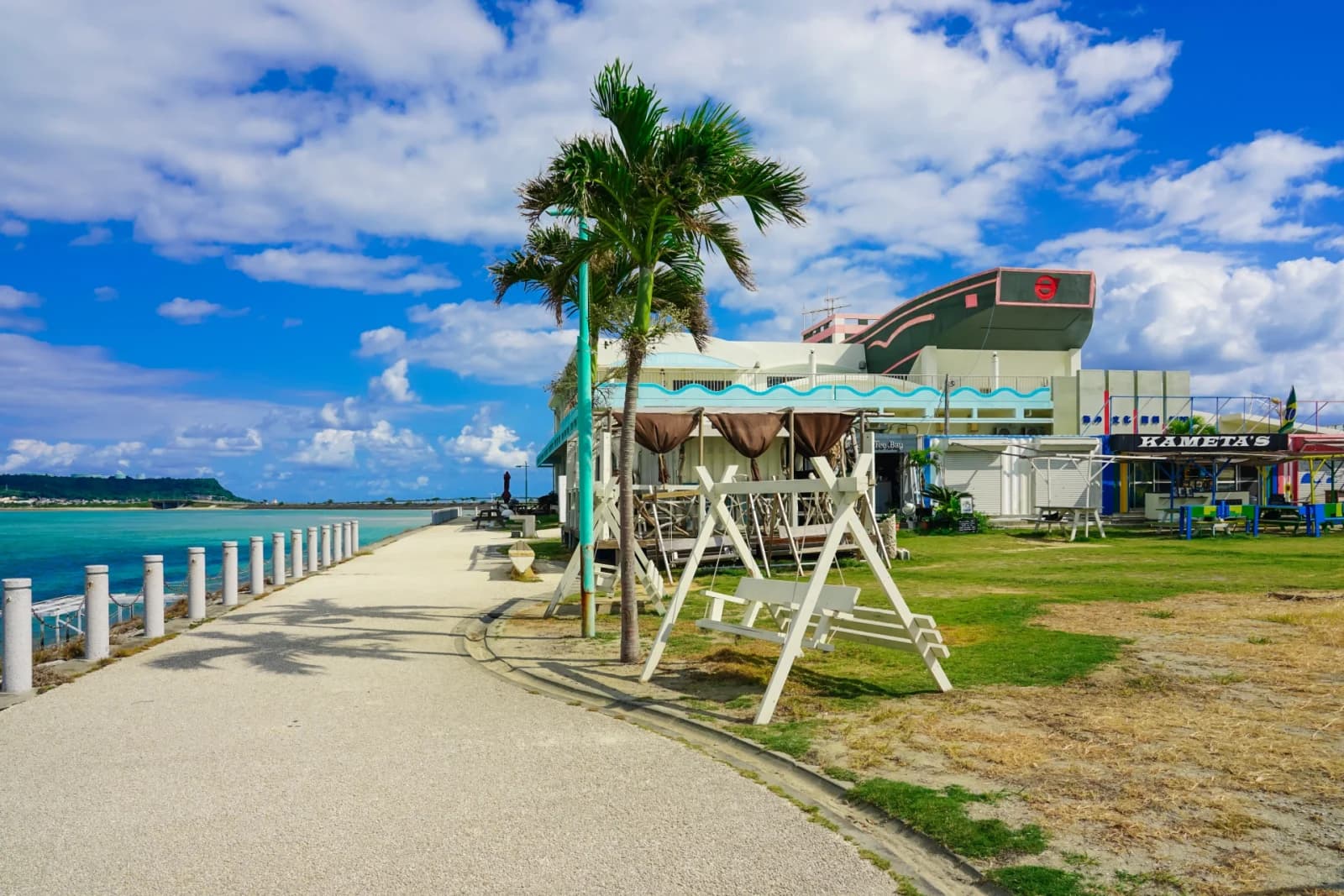 A calm beach along the Kaichu Road. The shallow waters extend far out, making it safe for families with small children. The water level drops significantly at low tide, so checking the tide schedule is recommended.