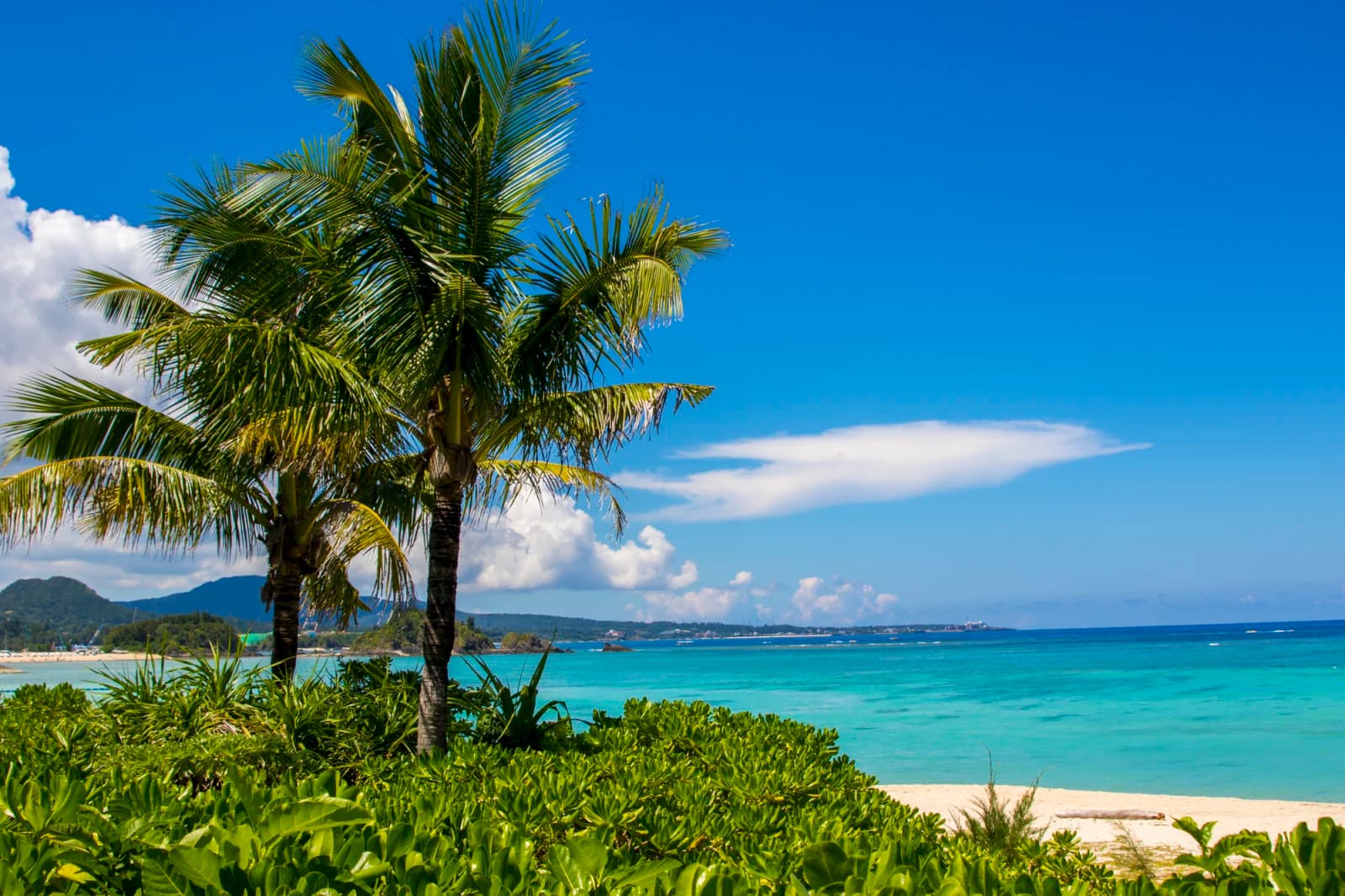 더 부세나테라스 앞에 펼쳐진 아름다운 리조트 해변. 정상회의 장소가 된 나고시 굴지의 고급 리조트 지역. 투명도가 높고, 해양 액티비티도 충실하다.